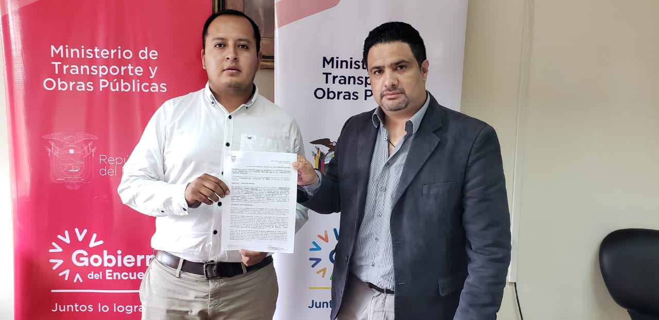 De manera simbólica, el subsecretario Eduardo Punín Burneo entregó a José Luis Caraguay Satama, representante Legal del Consorcio Dajoc, el cheque para la cimentación de esta infraestructura, ubicada en la vía Loja – Zamora a la altura del kilómetro 45, sector El Destrozo.