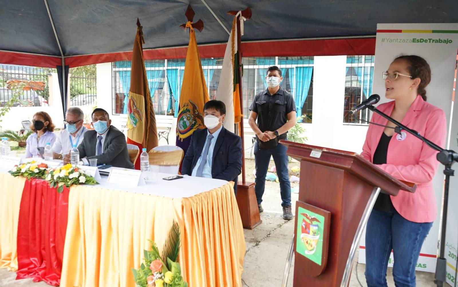 Yantzaza. – Con la presencia de la ministra de Educación María Brown, el gobernador Absalón Campoverde, alcalde Martín Jiménez y más autoridades del cantón, se realizó la inauguración de la reconstrucción de la Escuela de Educación Básica Especializada Matilde Guzmán, ubicada al norte de la ciudad de Yantzaza.